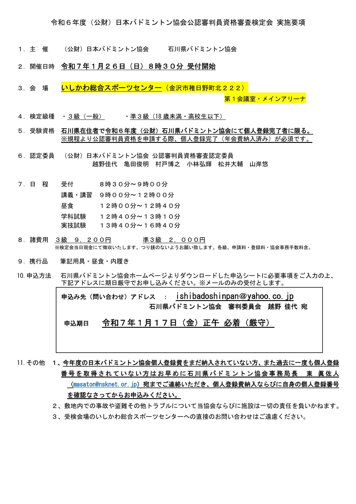 石川県バドミントン協会 審判委員会 越野 佳代 宛